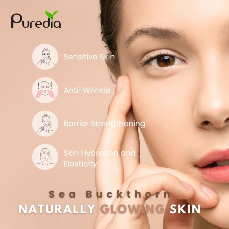 Anti-Wrinkle Properties: Sea buckthorn oil has been proven to reduce mean and maximum skin roughness, effectively diminishing the appearance of fine lines and wrinkles.